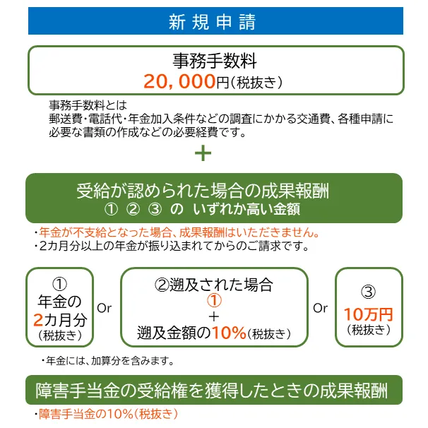 - 障害年金受給決定後に成果報酬をお支払いいただきます。